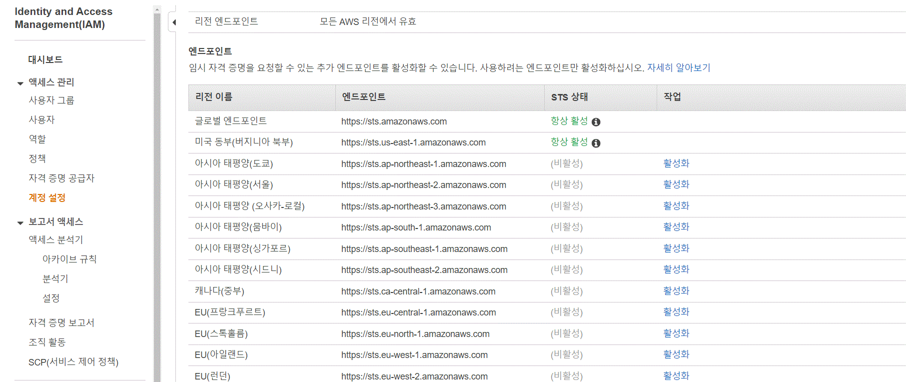 이거는 우선 리전마다 비활성화 작업을 진행해야합니다.