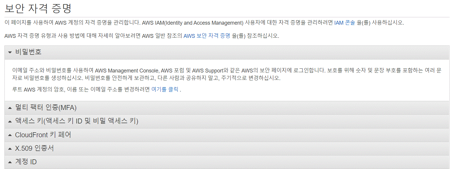 보안 자격 증명에서 엑세스키를 생성하셨을 경우